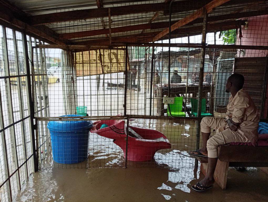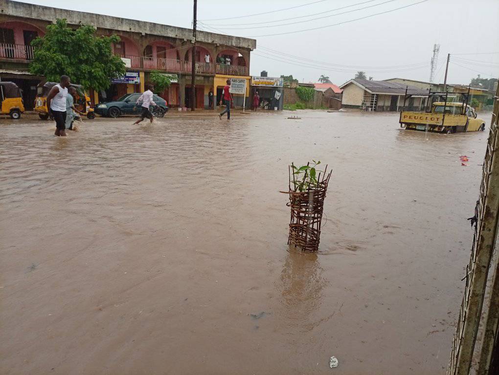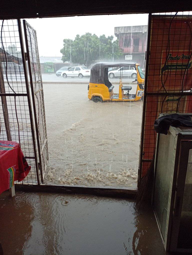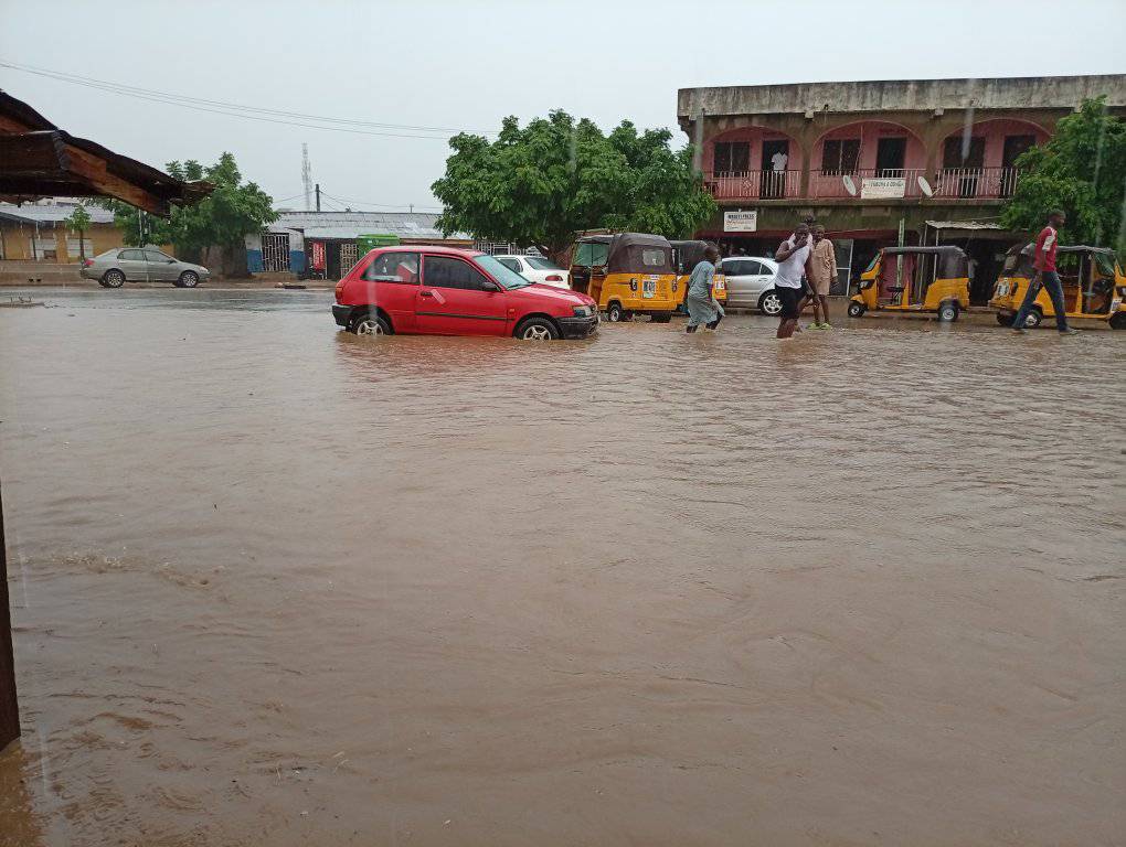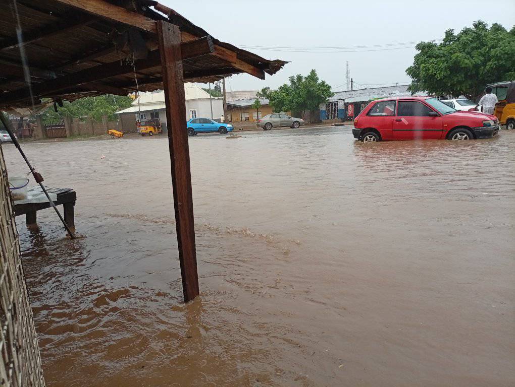 Heavy rainfall this afternoon has caused serious flooding in parts of Jimeta, Yola North Local Government Area, damaging shops and business premises along Gimba Road.