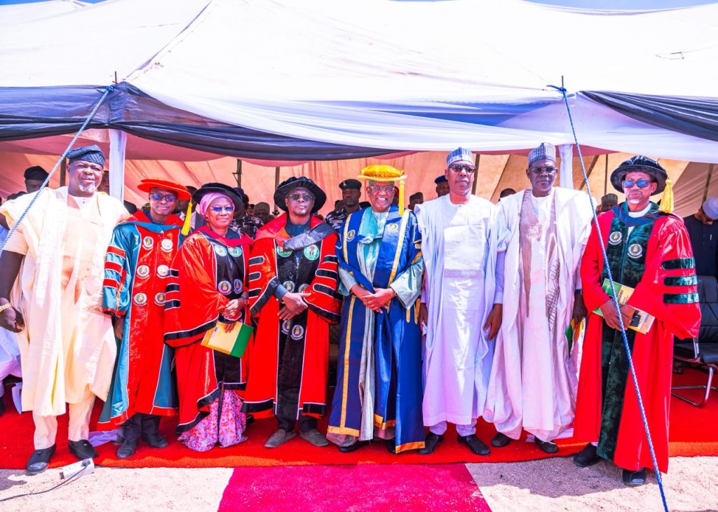The event, which marked the graduation of thousands of students across various disciplines, brought together prominent figures including Borno State Governor, Professor Babagana Umara Zulum; the Shehu of Borno, His Royal Highness Alhaji Abubakar Ibn Umar Garbai El-Kanemi; business magnate Alhaji Muhammadu Indimi; and other distinguished guests.
